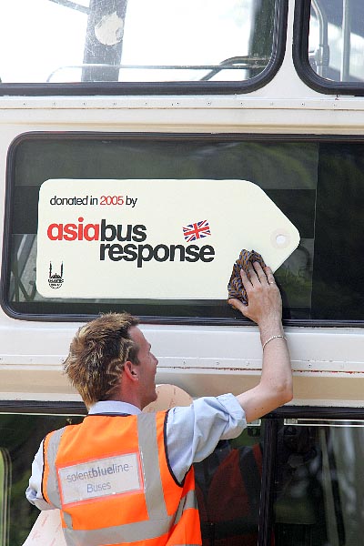 Applying Asia Bus Response stickers supplied by supporter, Viacom Outdoor
