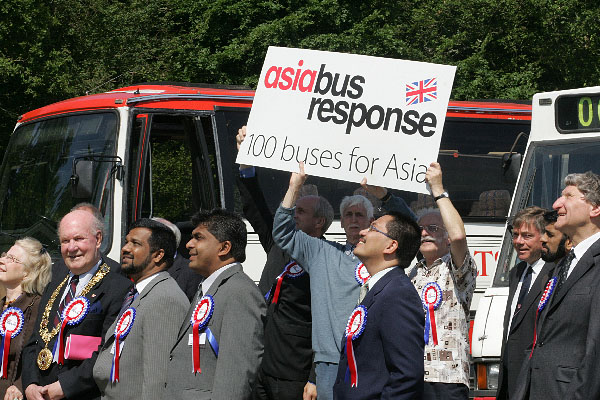 Industry and overseas VIPs celebrate the handover of buses to Islamic Relief